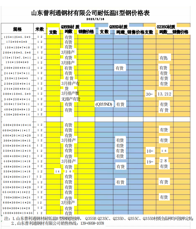 3月17日Q355CH型鋼現(xiàn)貨表