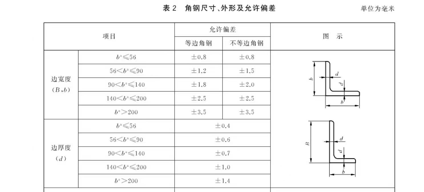 國標(biāo)Q355D角鋼外形壁厚負(fù)差